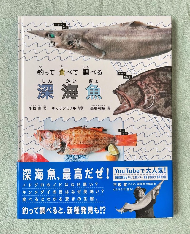 【釣って 食べて 調べる 深海魚】 平坂寛 文 キッチンミノル 写真 長嶋祐成 絵 福音館書店 福音館書店の月刊誌「たくさんのふしぎ」2021年7月号が たくさんのふしぎ傑作集としてハードカバー化したもの。 未だ謎の多い深海魚について 釣って、食べて、調べるところまで丁寧に描かれています。 店主は食いしん坊なため やはり美味しそう✨という視点で見てしまいます! 言い訳: だってキッチンみのるさんの写真が とても魅力的なんですもの♡
